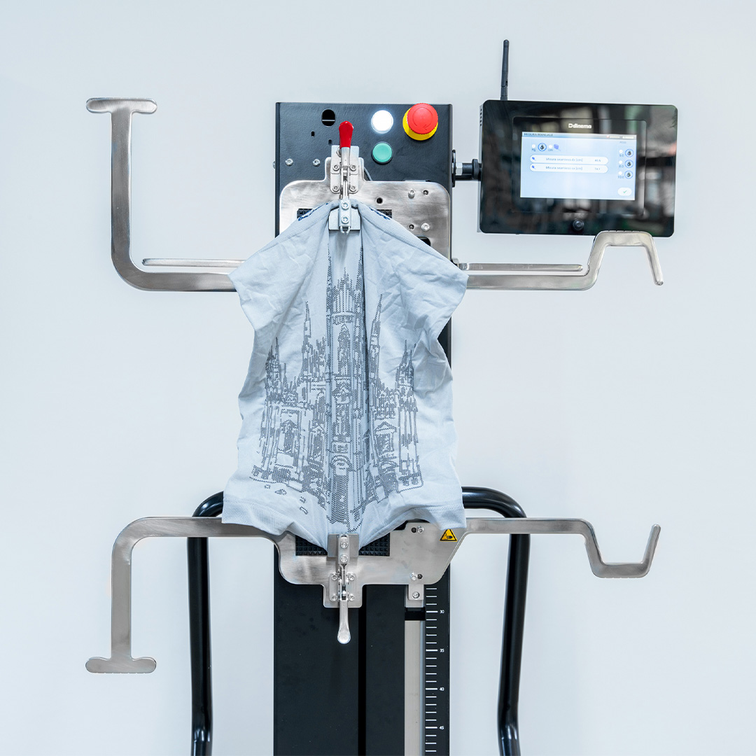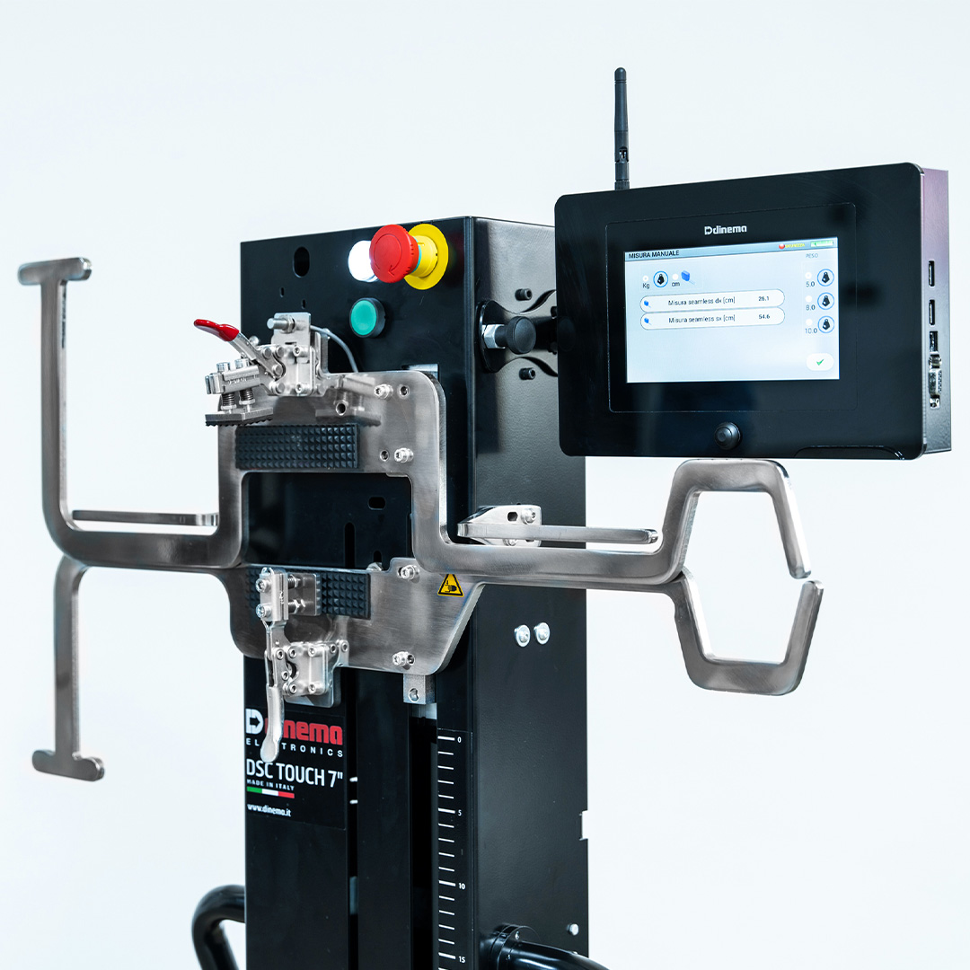 DSC TOUCH 7” V.3 BLACK EDITION is the new size control device for socks and underwear, and it has been studied to solve the problems related to size univocity and to size measurements precision both for knitting and finishing internal and external departments. Measuring is effected by means of the traction determined by the carriage moving down at a constant speed up until the set up pulling force is reached. The Measuring is controlled by an electronic system.
